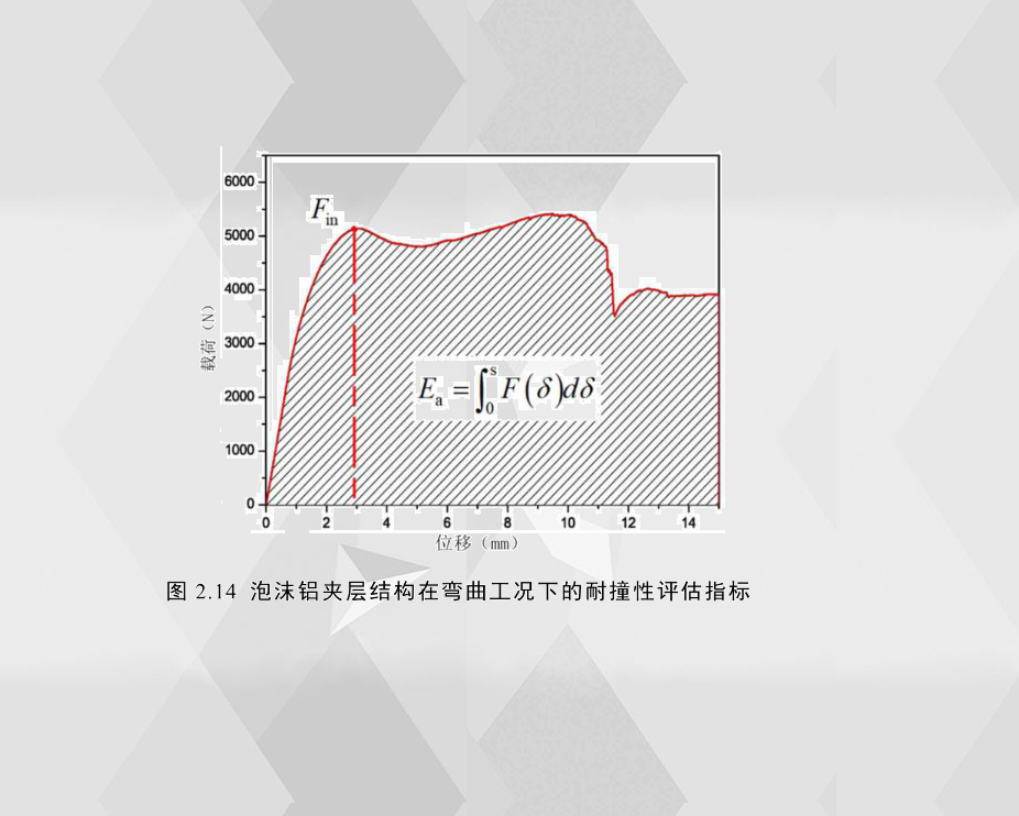 為了量化夾層結(jié)構(gòu)彎曲工況下的耐撞性能,引入四個評價指標(biāo)來評估當(dāng)前彎曲實(shí)驗夾層結(jié)構(gòu)的耐撞性,包括臨界載荷、吸能總量、比吸能和平均載荷。圖2.14是夾層結(jié)構(gòu)在彎曲工況下的載荷-位移曲線,部分指標(biāo)如圖中所示。