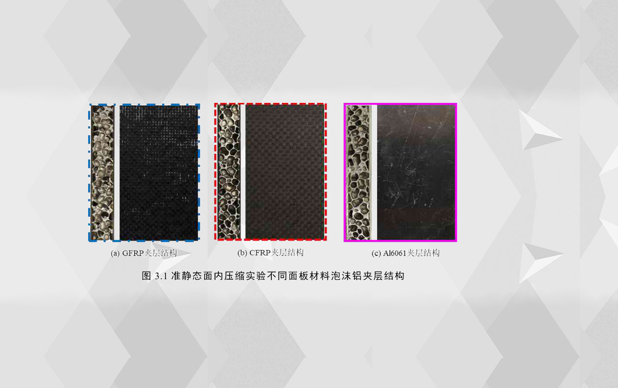 泡沫鋁夾層結(jié)構(gòu)在汽車應(yīng)用中所承載的另一種典型工況為面內(nèi)壓縮,例如泡沫鋁填充引擎蓋、側(cè)門等,例如泡沫鋁填充的前縱梁,當(dāng)汽車發(fā)生正面碰撞交通事故時(shí),當(dāng)沖擊速度較大時(shí),引擎蓋、側(cè)門會發(fā)生較大的擠壓面內(nèi)變形,而夾層結(jié)構(gòu)在面內(nèi)壓縮工況下的失效機(jī)理和吸能特性也是相當(dāng)復(fù)雜的,為了推動夾層結(jié)構(gòu)在汽車上的應(yīng)用,對泡沫鋁夾層結(jié)構(gòu)在面內(nèi)壓縮工況下全面系統(tǒng)的研究是很有必要的。本章主要通過實(shí)驗(yàn)的方法,揭示了不同配置的泡沫鋁夾層結(jié)構(gòu)在準(zhǔn)靜態(tài)面內(nèi)壓縮工況下的結(jié)構(gòu)響應(yīng)機(jī)理、失效模式以及耐撞性能,得出何種配置的泡沫鋁夾層結(jié)構(gòu)的耐撞性能更優(yōu),泡沫鋁夾層結(jié)構(gòu)的配置參數(shù)主要包括面板材料、面板厚度、芯層高度和芯層密度。